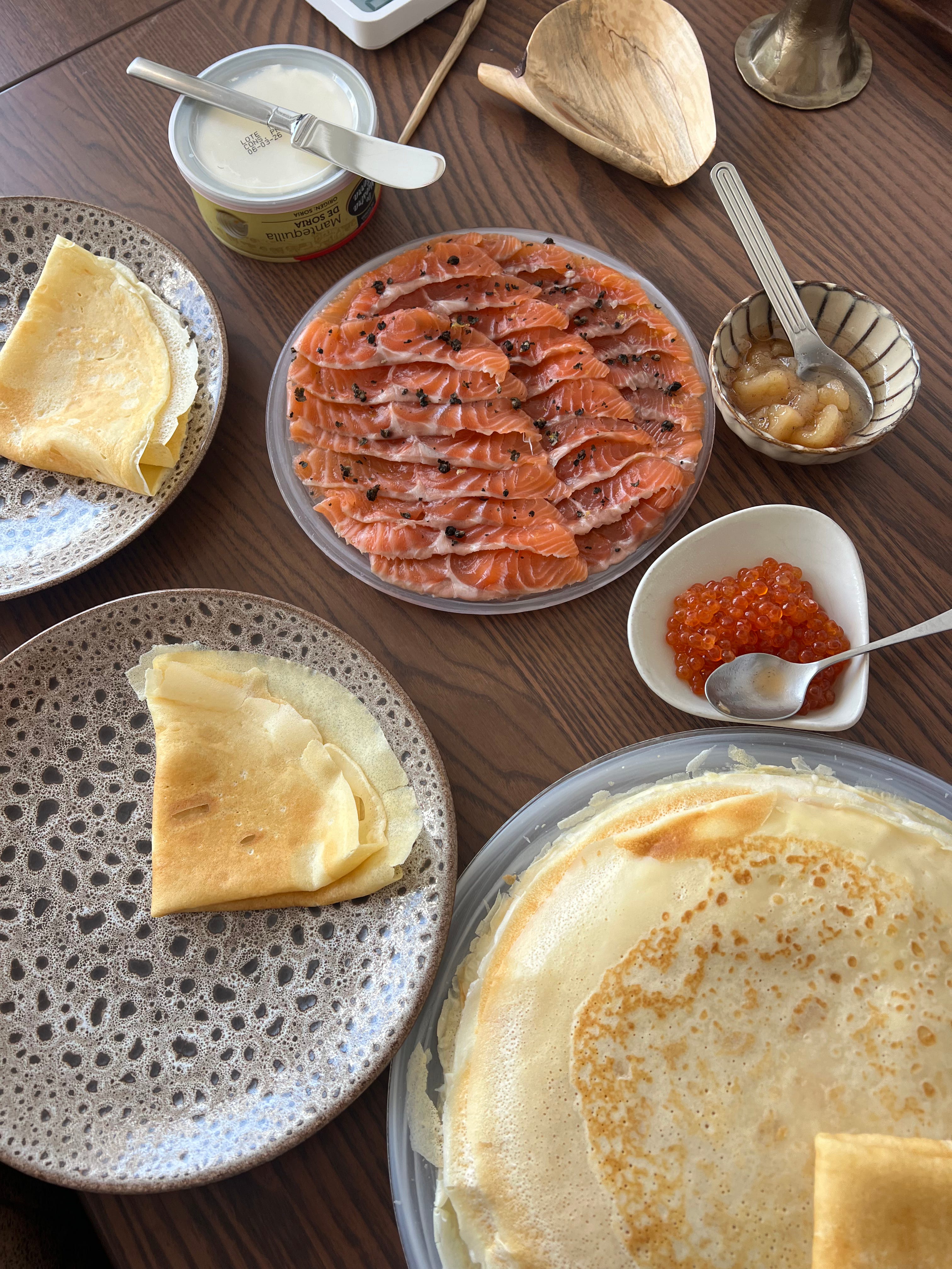 Completely different from the last spread, this one is full of light and confidence. These are my pagan drawings of Maslenitsa — a slavic holiday celebrating the arrival of Spring which is hosted one week before Lent. It’s full of mythology at its roots and has lot’s of different traditions (like burning Maslenitsa figure and having a round dance) but for me it means we are cooking and eating blinis with cured salmon and butter all week. I remember celebrating this holiday since I was a kid and it brings up warm nostalgia in me.
